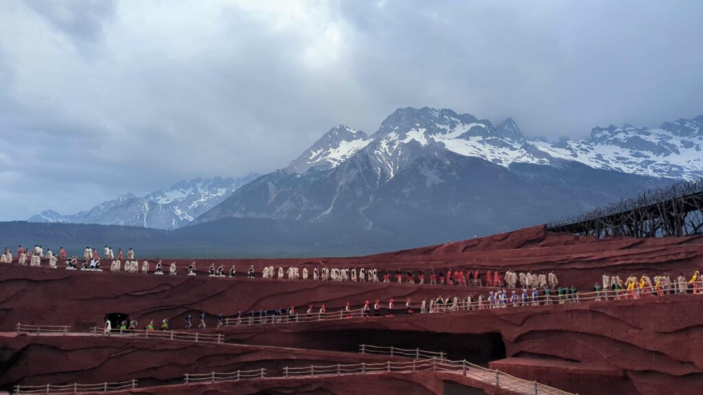 The Impressions of Li Jiang Show is a 1 hour open-air show with a dramatic backdrop of the Jade Dragon Snow Mountain range. It was really impressive to see the hundreds of performer singing, dancing and even riding horses on stage!