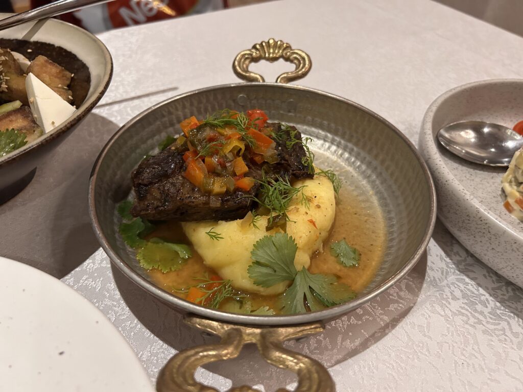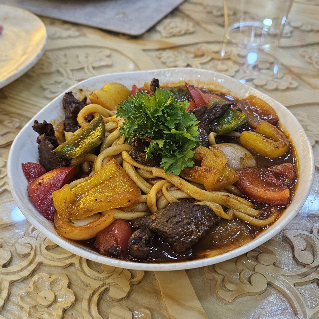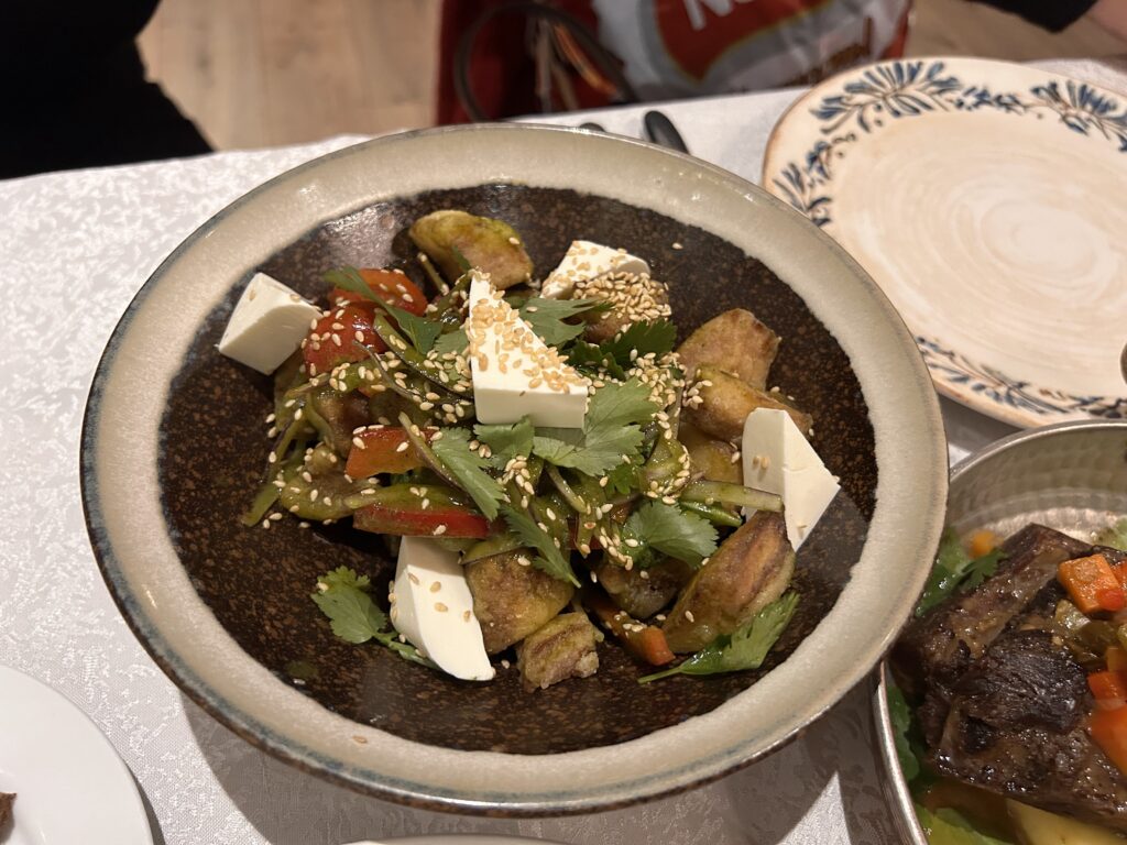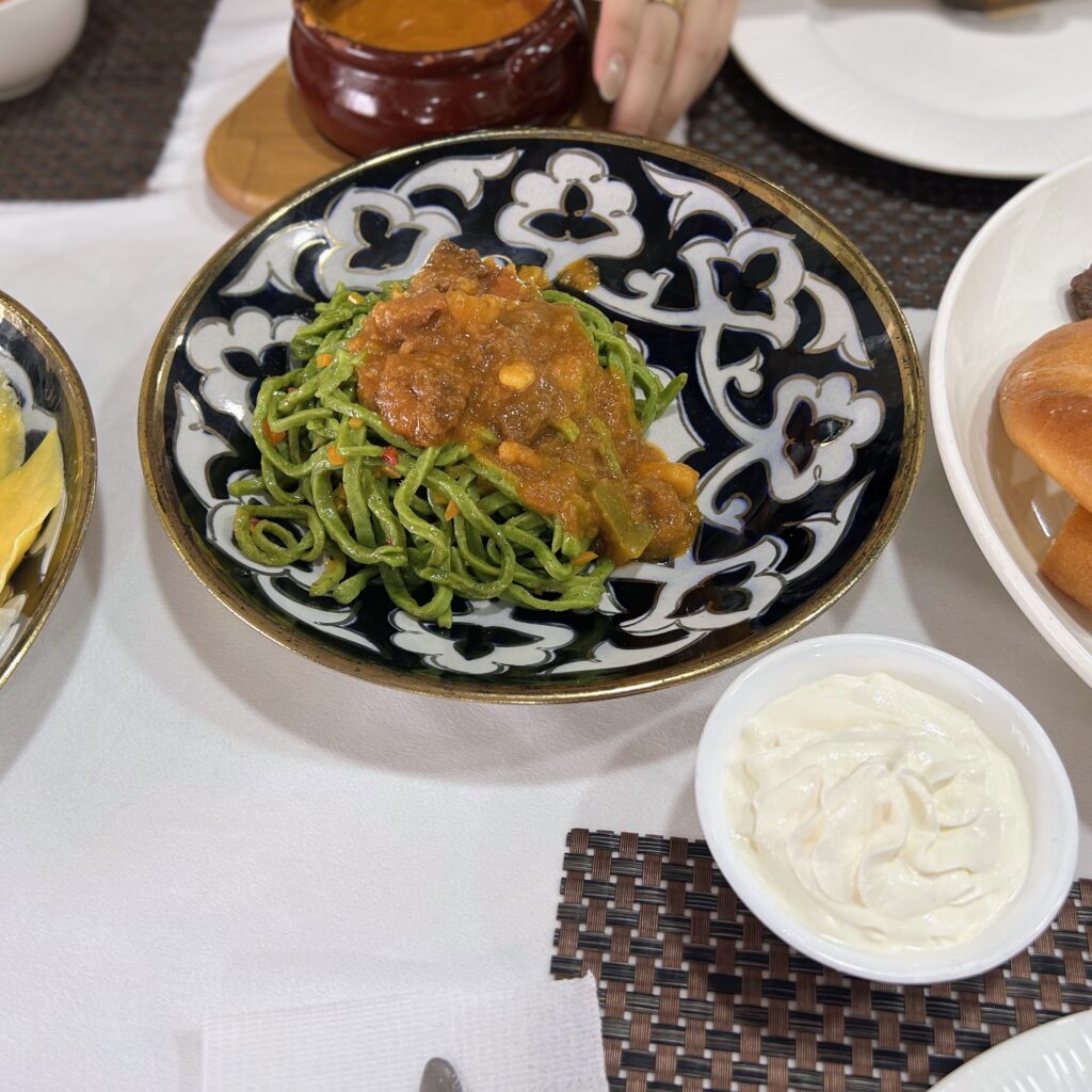 There some Khiva-only dishes that you absolutely should try here like ijjan – it is most similar to beef tartare. My favourites were the eggplant wrap with cheese, beef with mashed potatoes and fried lagman (noodles).