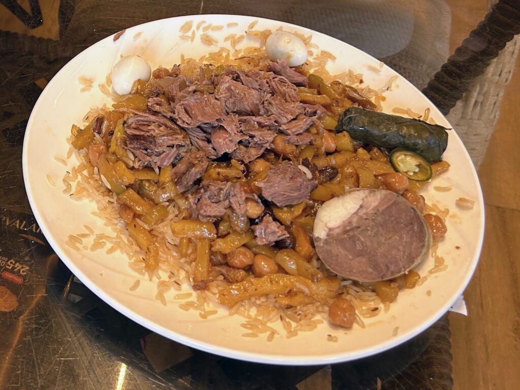 - Shivit Oshi – Green noodles topped with potatoes / beef stew and yogurt