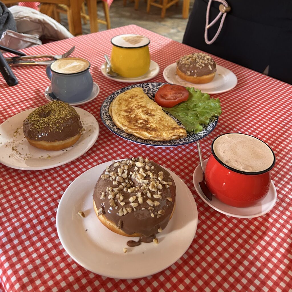 Eating freshly baked donuts was a first for me! Our breakfast including coffee and an omelette was around 200K Soms.